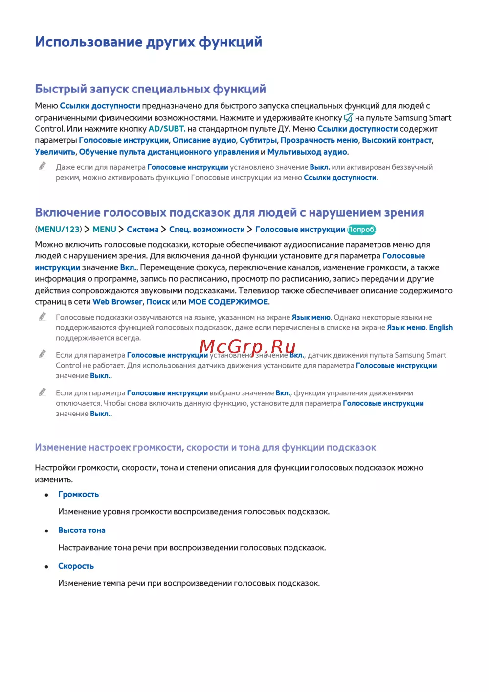 ограниченными физическими возможностями. Нажмите и удерживайте кнопку на пульте Samsung Smart