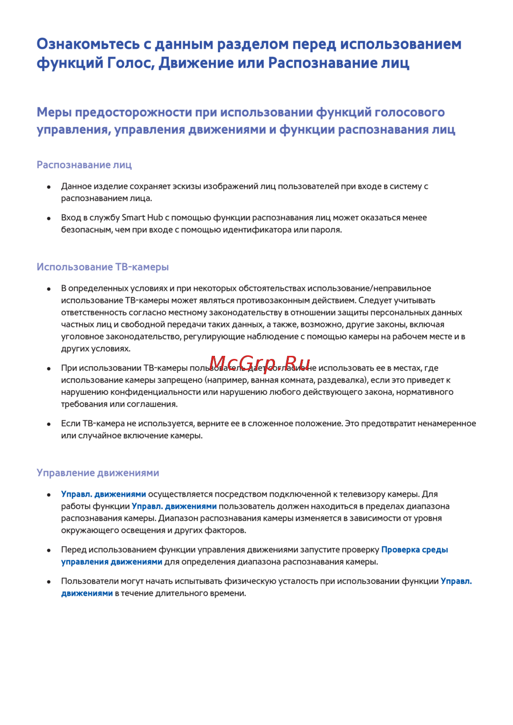 Узнайте о мерах предосторожности при использовании функций голосового управления, управления движениями и распознавания лиц для обеспечения безопасности и конфиденциальности.
