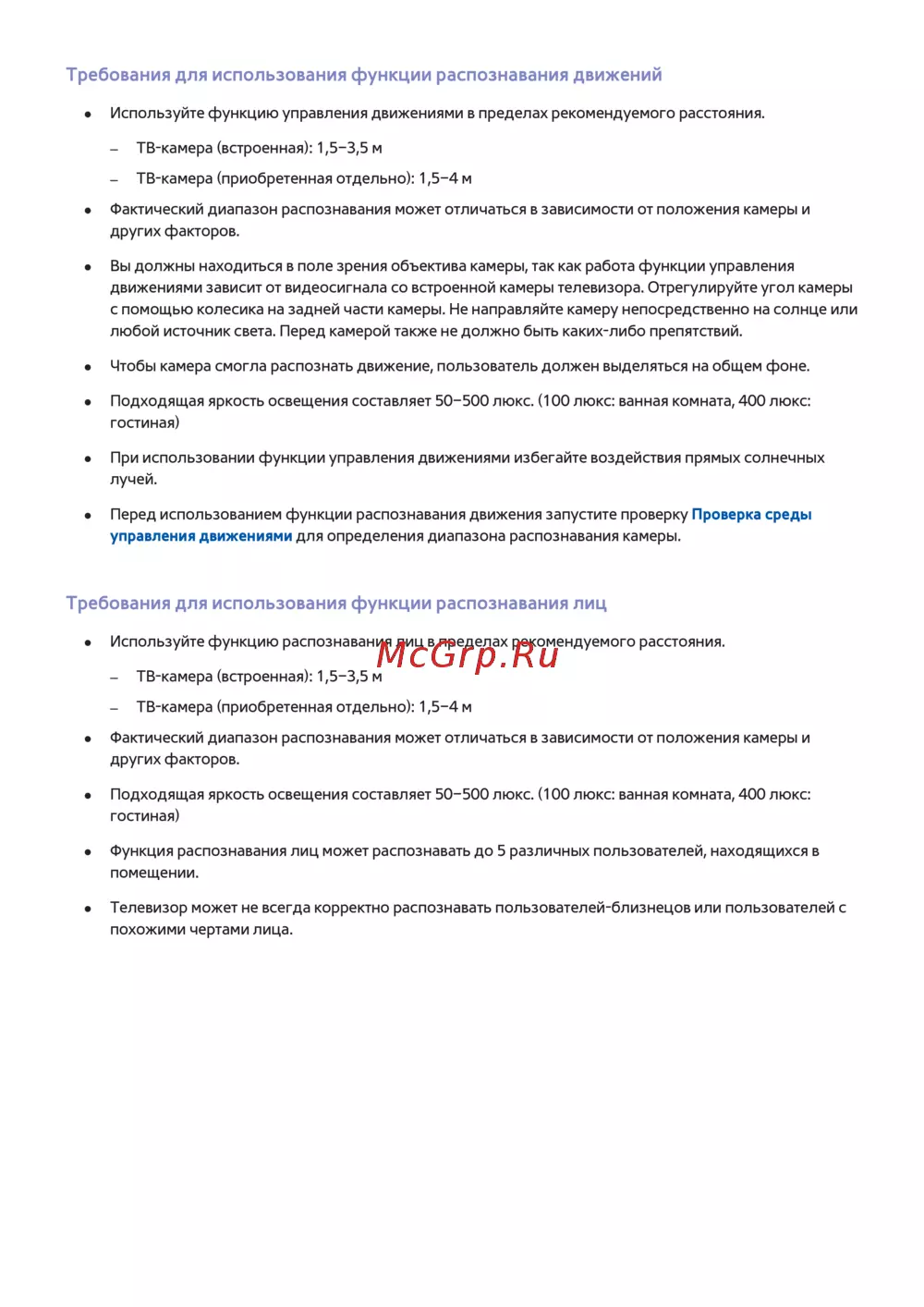 - Функция распознавания лиц может распознавать до 5 различных пользователей находящихся в помещении p.175
