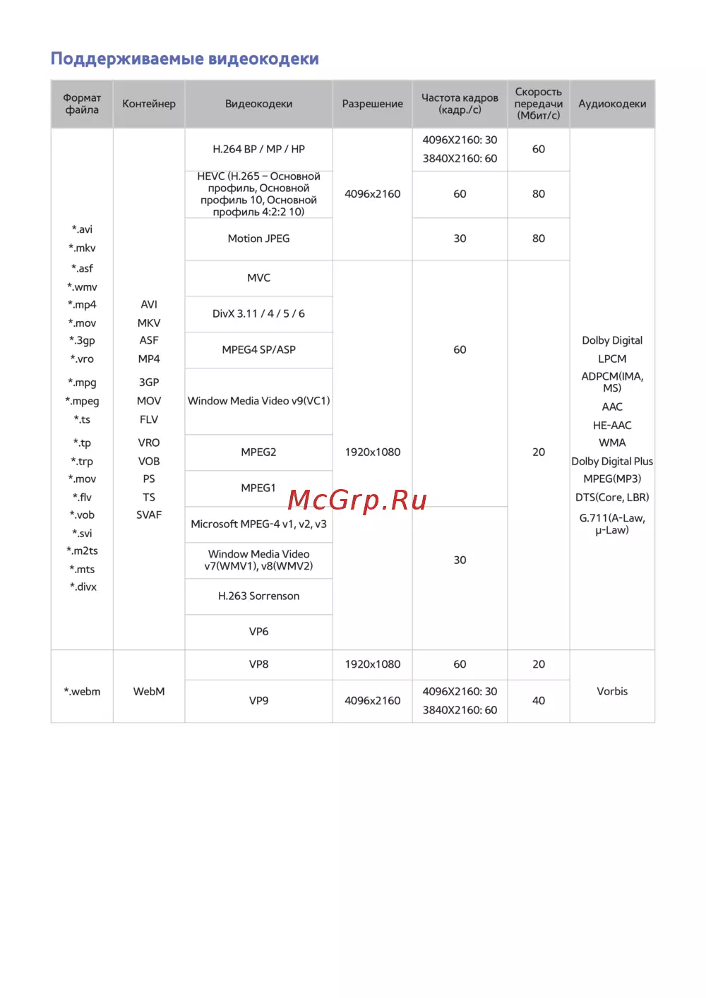 Samsung UE65JS9000 [182/194] Поддерживаемые видеокодеки