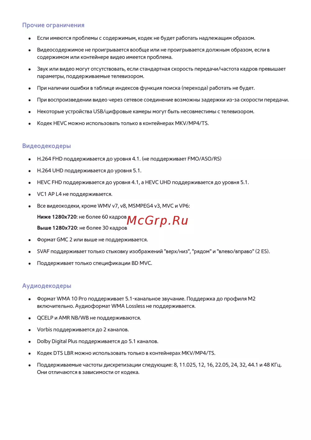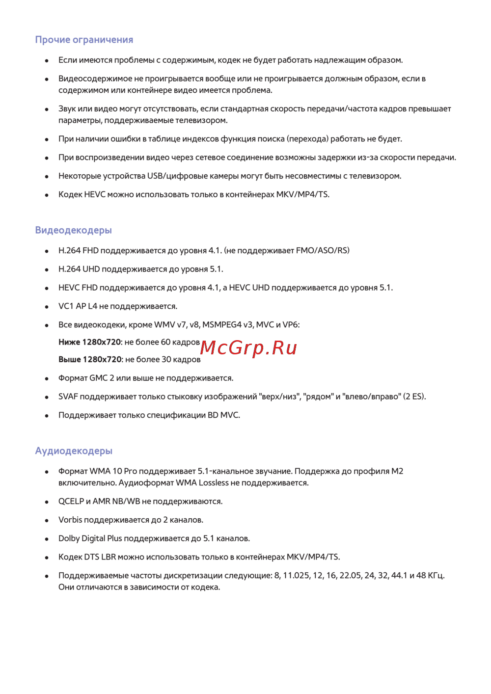 Samsung UE65JS9000 — ограничения и поддержка видео и аудио кодеков [183/194]