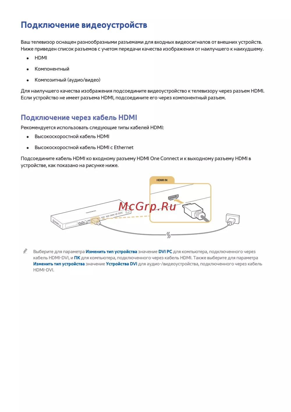 Для наилучшего качества изображения подсоедините видеоустройство к телевизору через разъем HDMI.