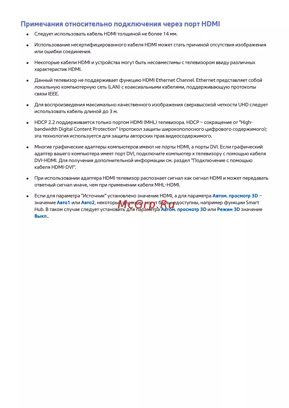 Если для параметра "Источник" установлено значение HDMI, а для параметра Автом. просмотр 3D –