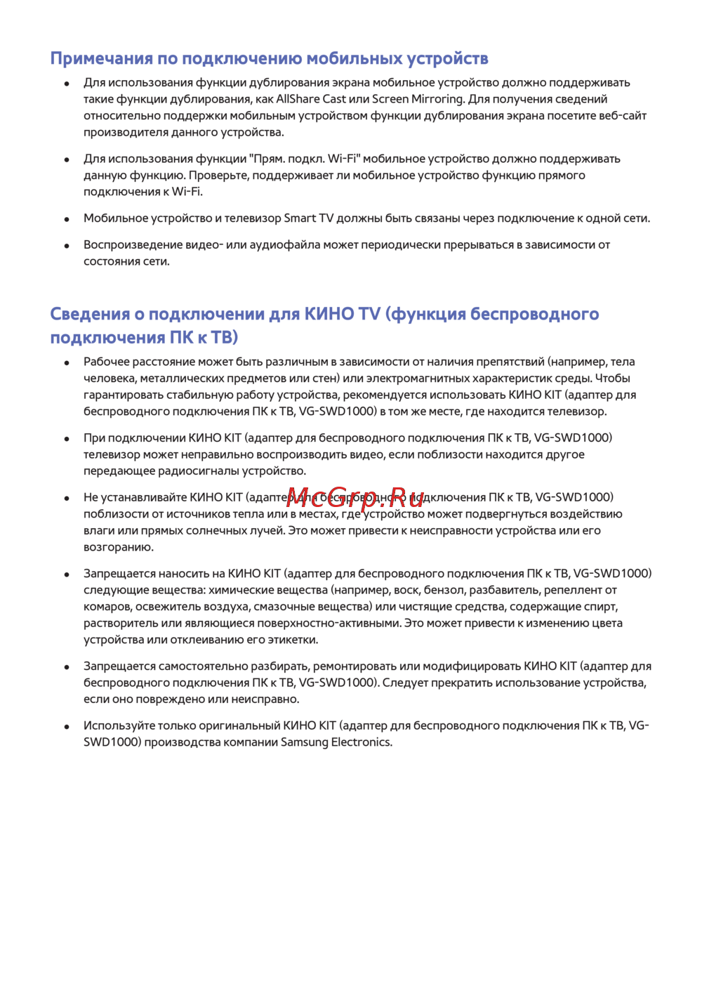 беспроводного подключения ПК к ТВ, VG-SWD1000). Следует прекратить использование устройства,