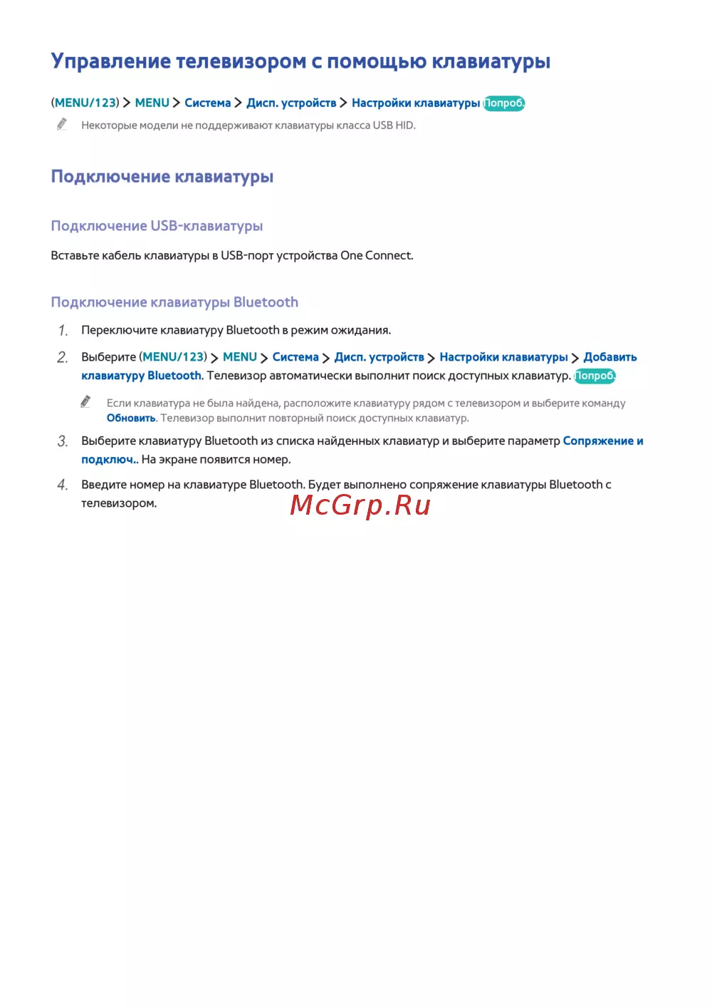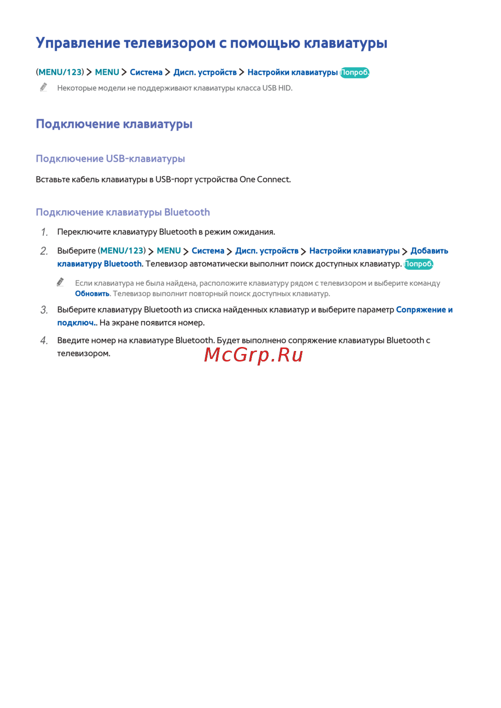 клавиатуру Bluetooth. Телевизор автоматически выполнит поиск доступных клавиатур.