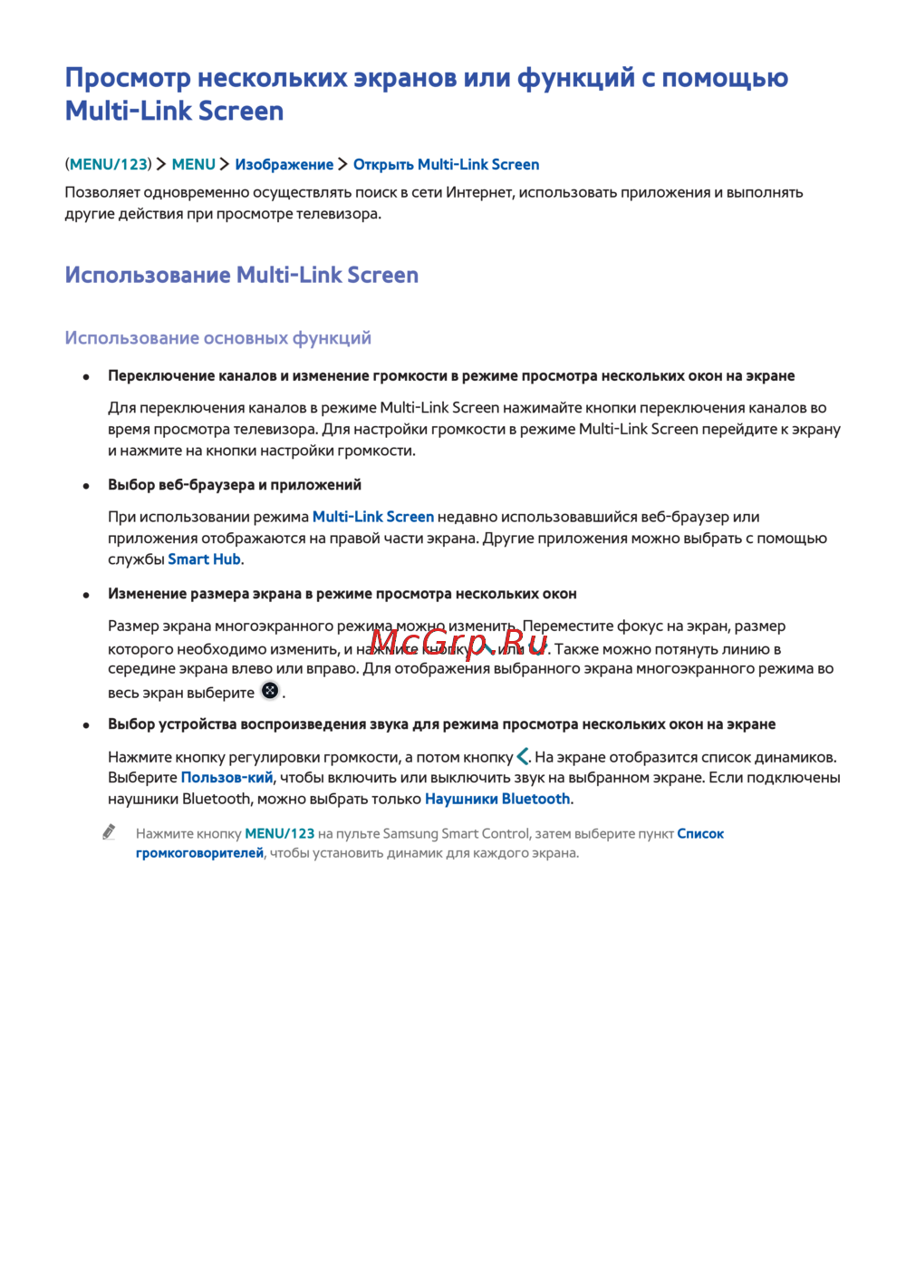 время просмотра телевизора. Для настройки громкости в режиме Multi-Link Screen перейдите к экрану