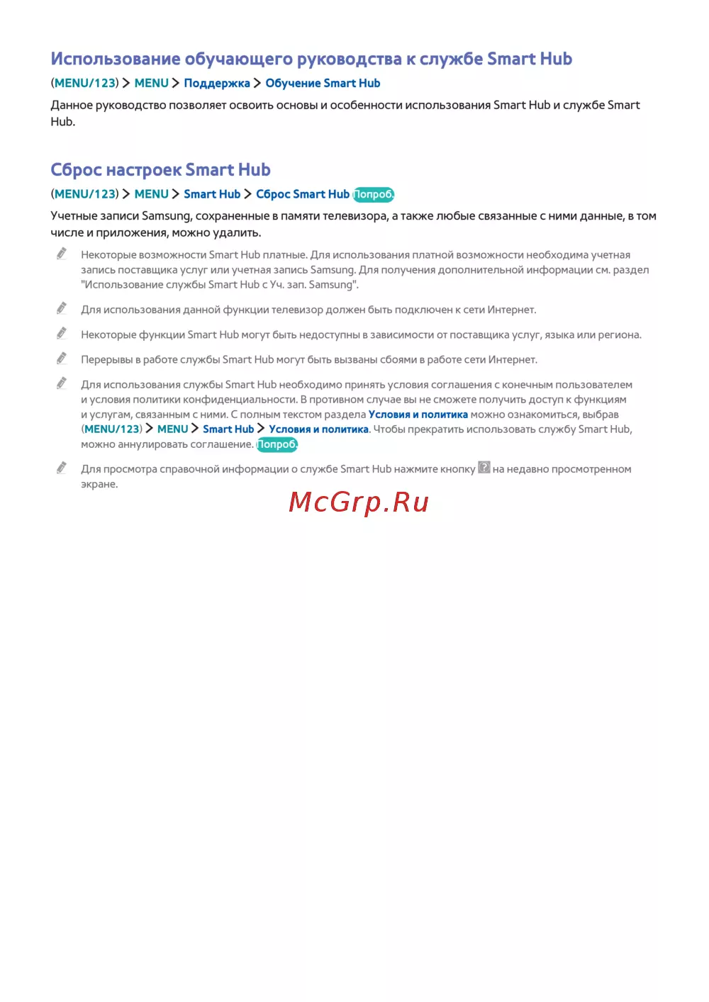 Данное руководство позволяет освоить основы и особенности использования Smart Hub и службе Smart