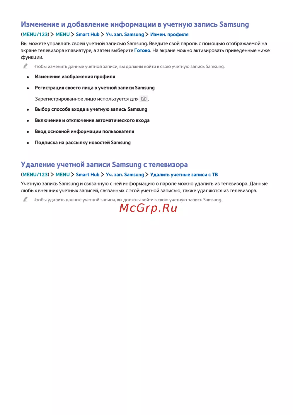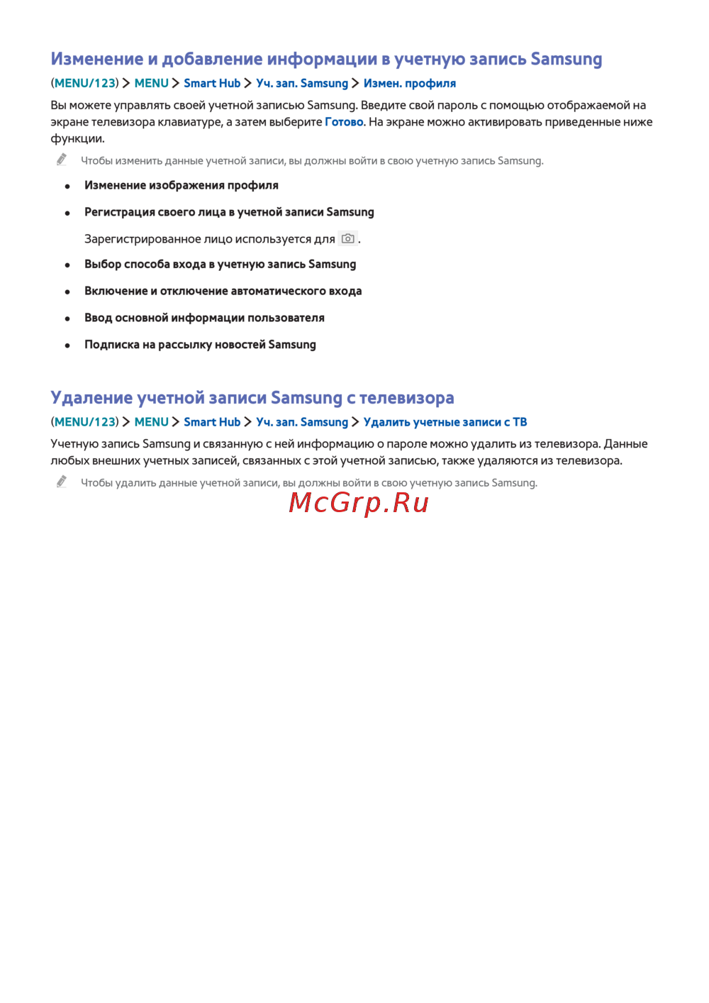 (MENU/123) MENU Smart Hub Уч. зап. Samsung Измен. профиля