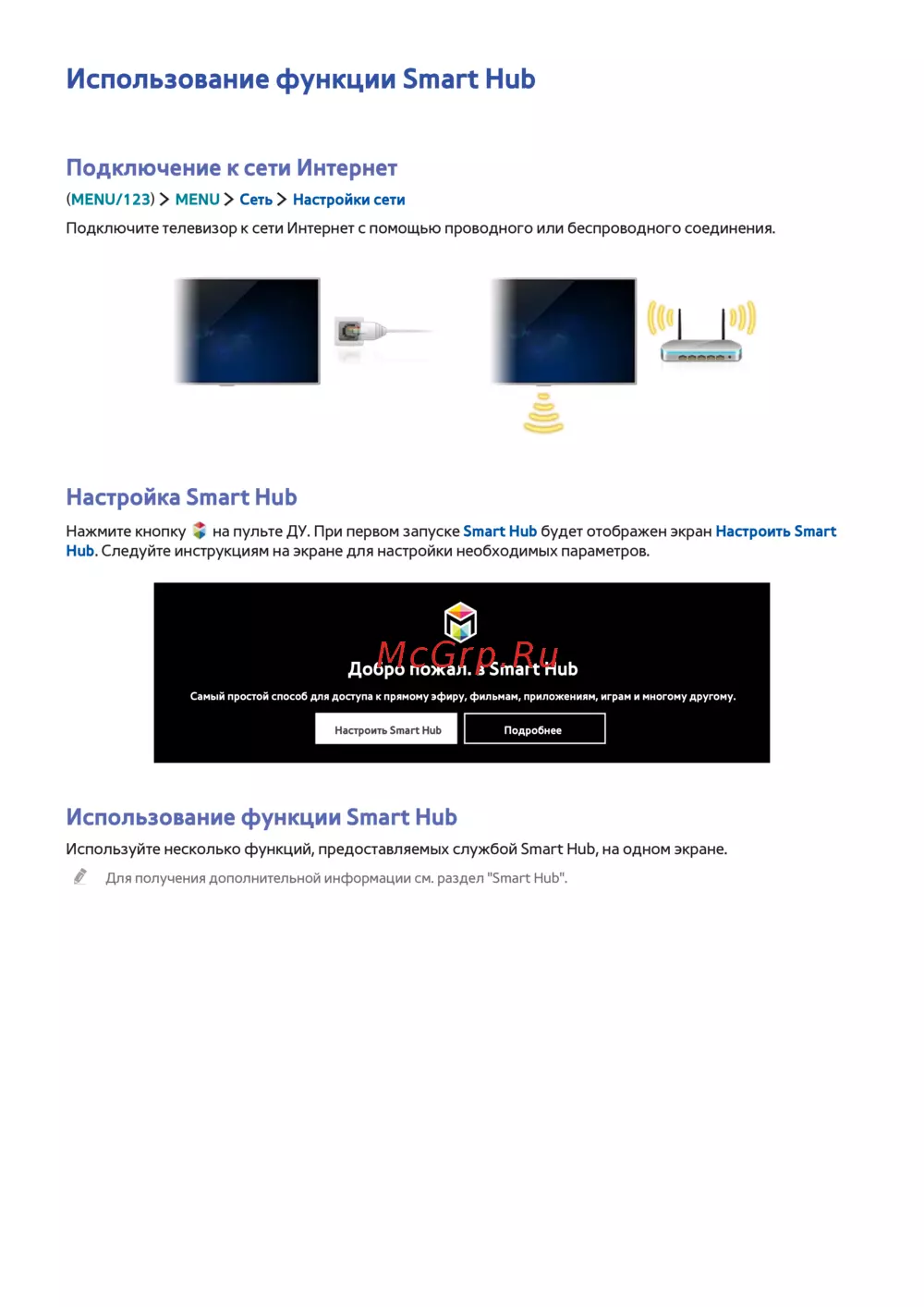 Для получения дополнительной информации см. раздел "Smart Hub".