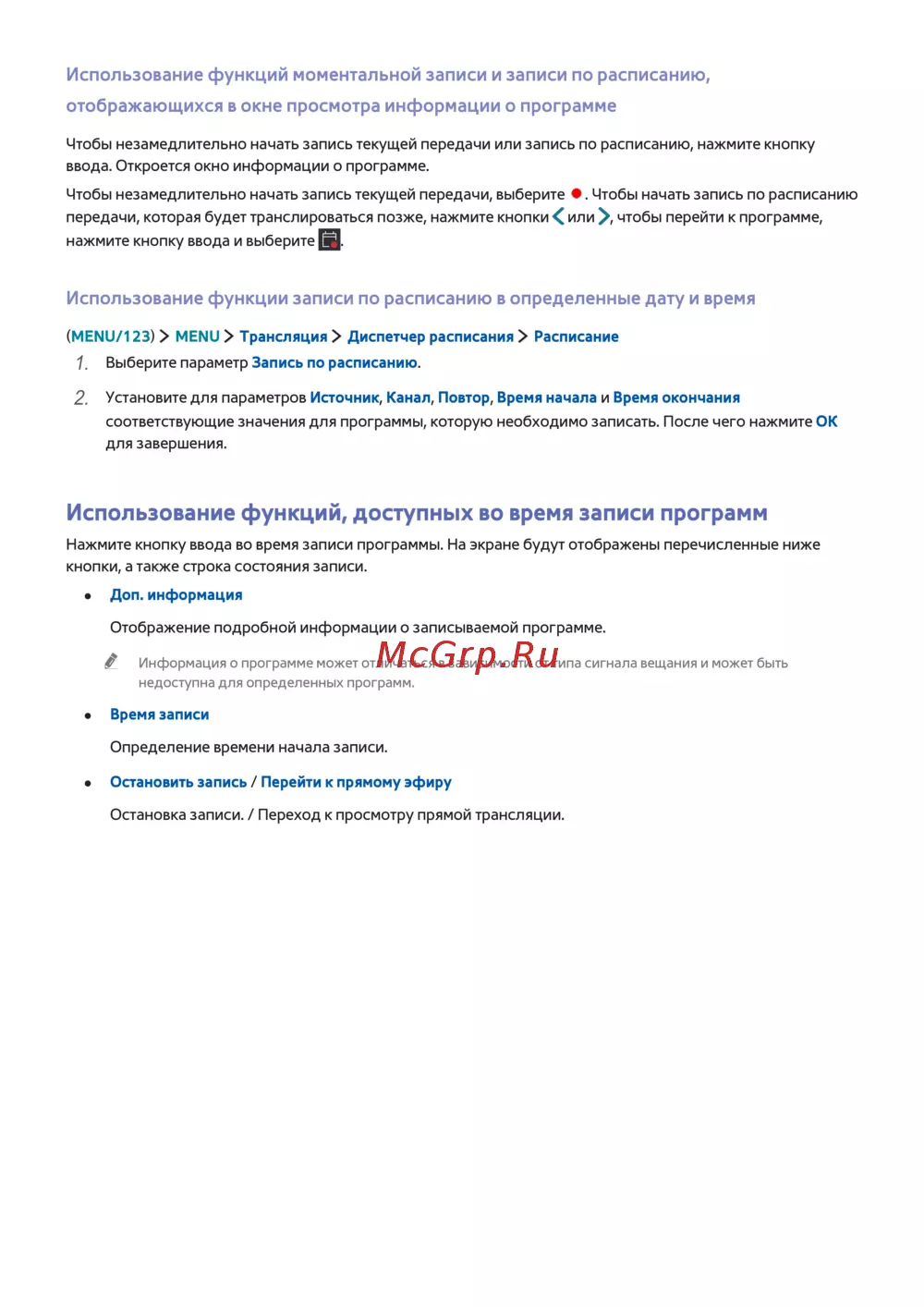 Samsung UE65JS9000 — как использовать функции записи программ: моментальная и по расписанию [87/194]