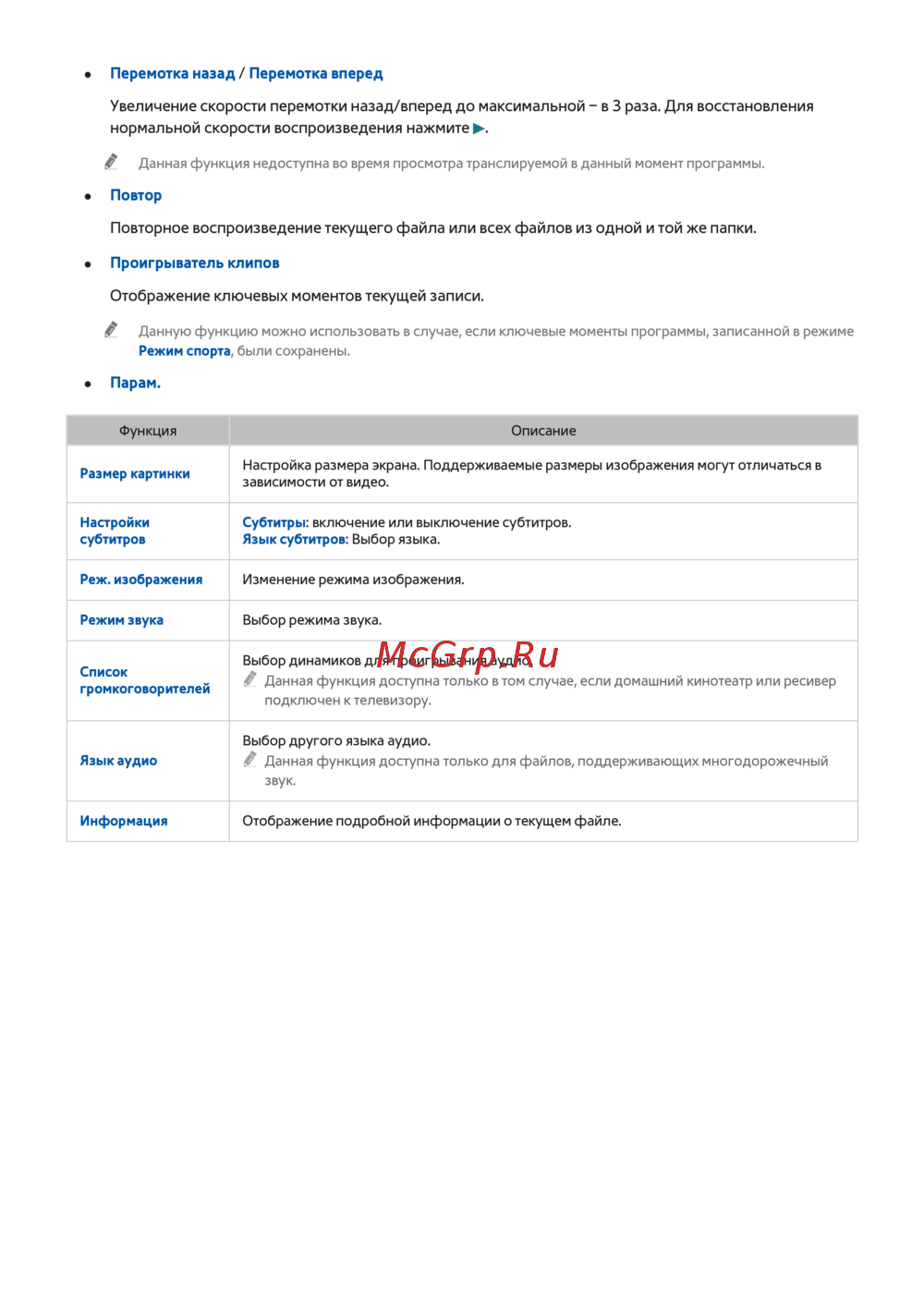 - При воспроизведении видео через сетевое соединение возможны задержки из за скорости передачи p.183
