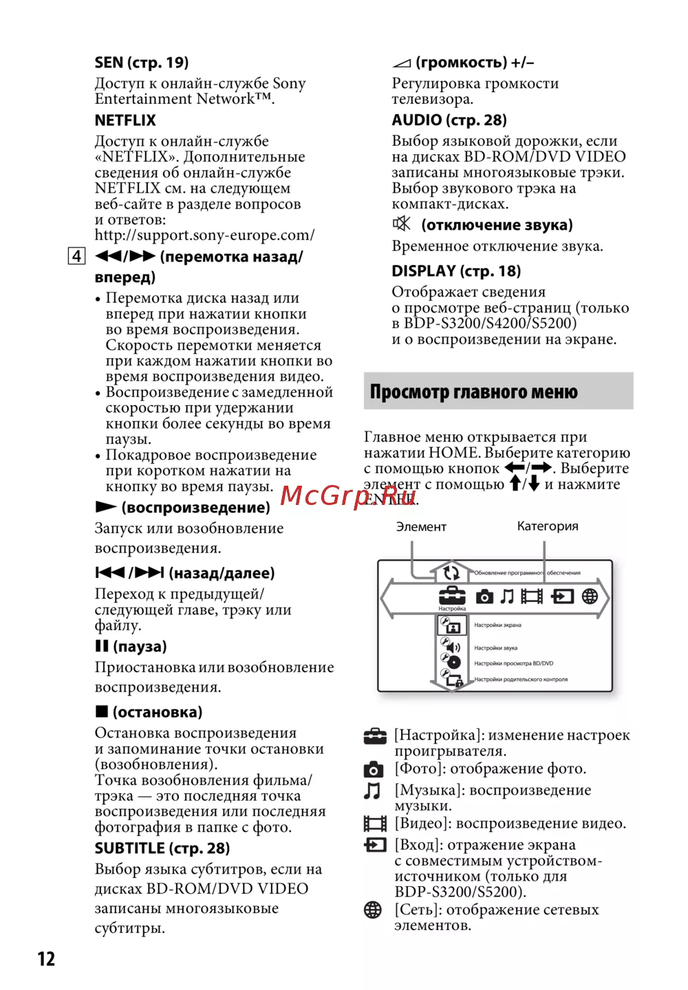 ![Sony BDP-S1200 [12/46] Просмотр главного меню](/views2/1211236/page12/bgc.png)