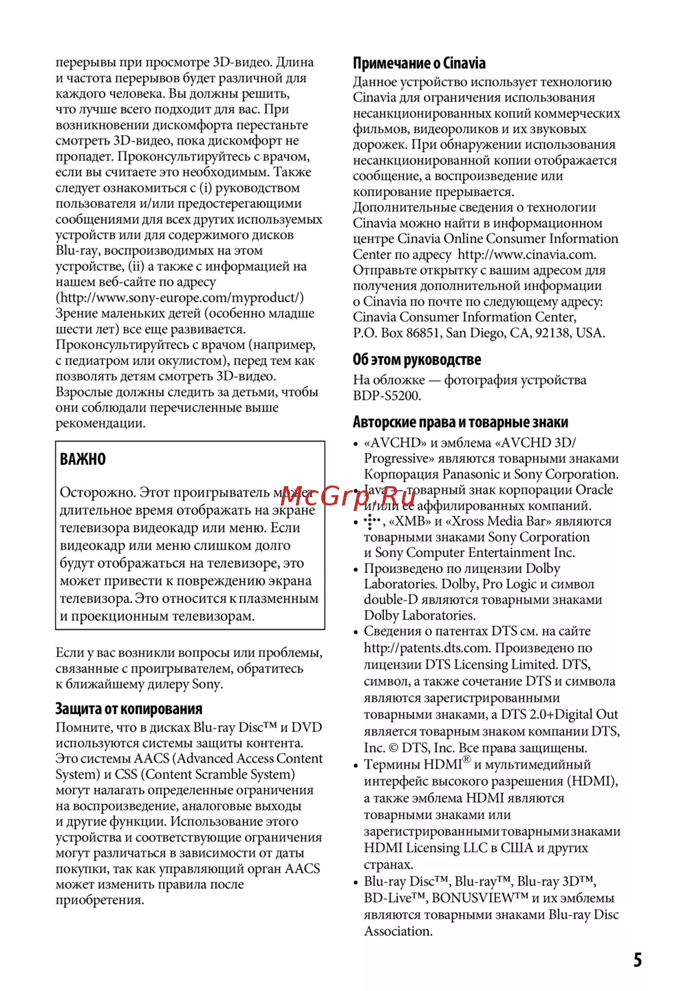 Sony BDP-S5500/BMИнструкция по эксплуатации -
