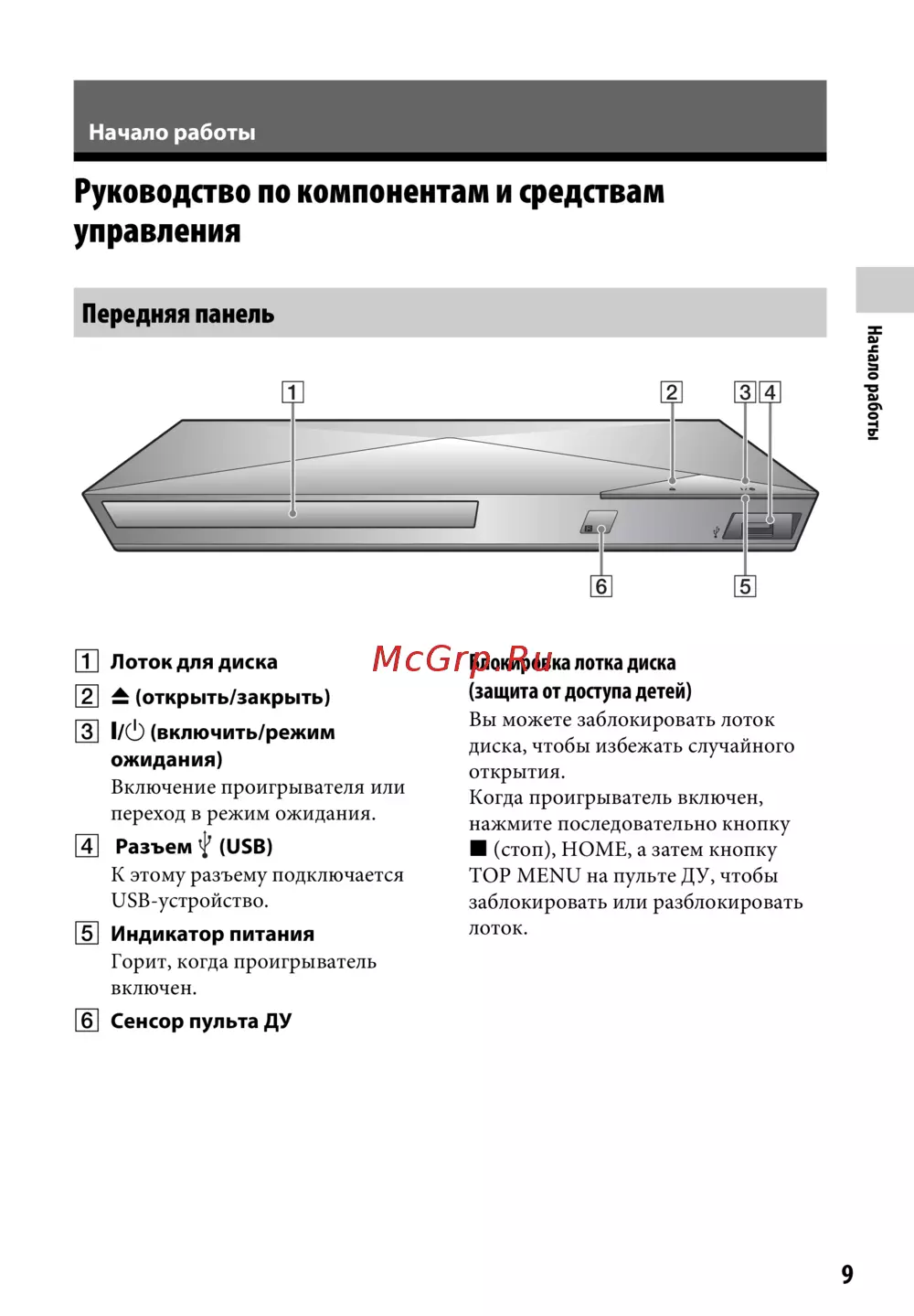 Sony BDP-S1200 [9/46] Руководство по компонентам и средствам управления