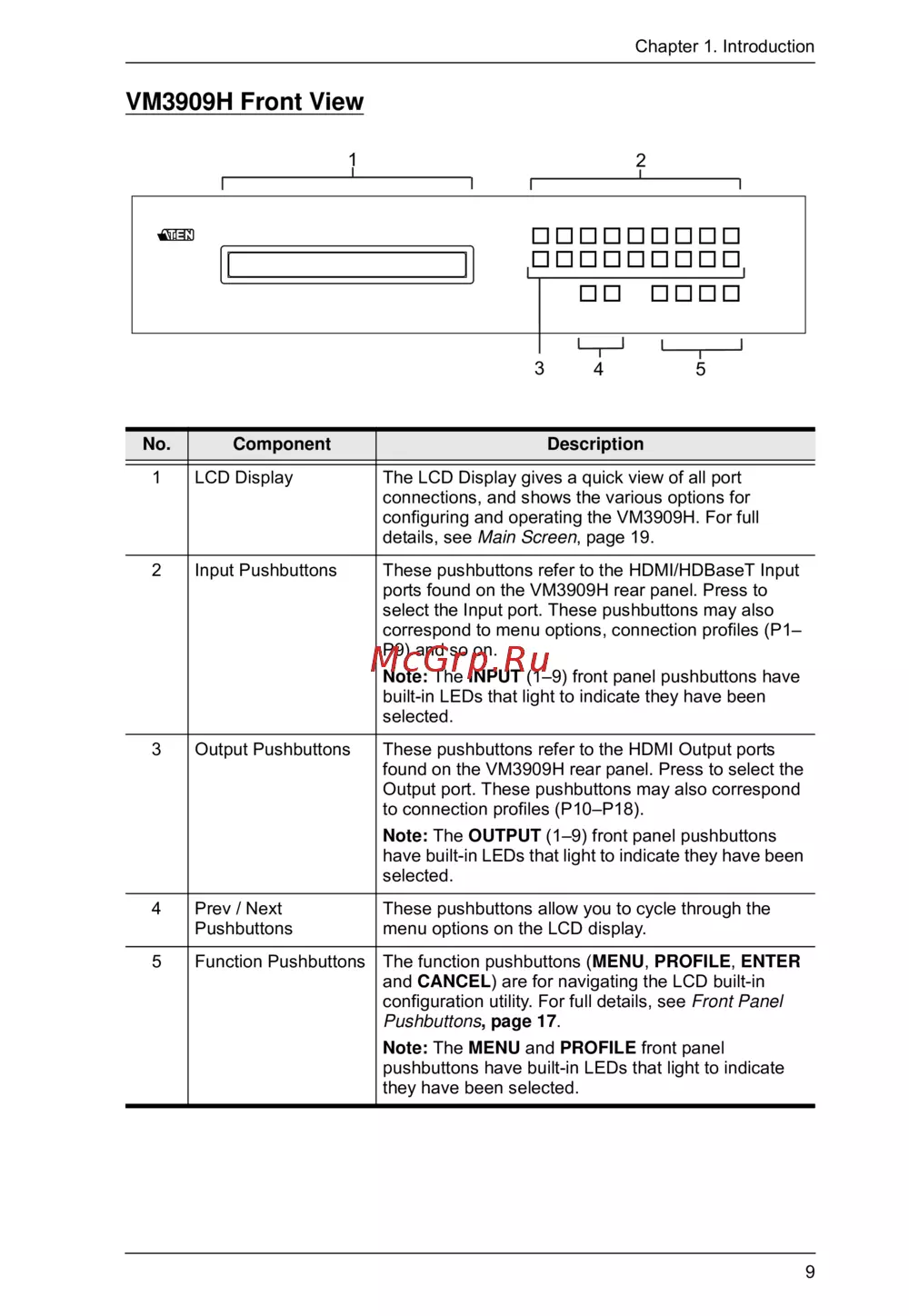 - The vm3404h vm3909h has a built in configuration utility via the front panel lcd which can be controlled by pressing the menu and front panel input pushbuttons 1 9 or 1 4 user can cycle through the menu options starting from ip setting page in the order shown in the table below p.33