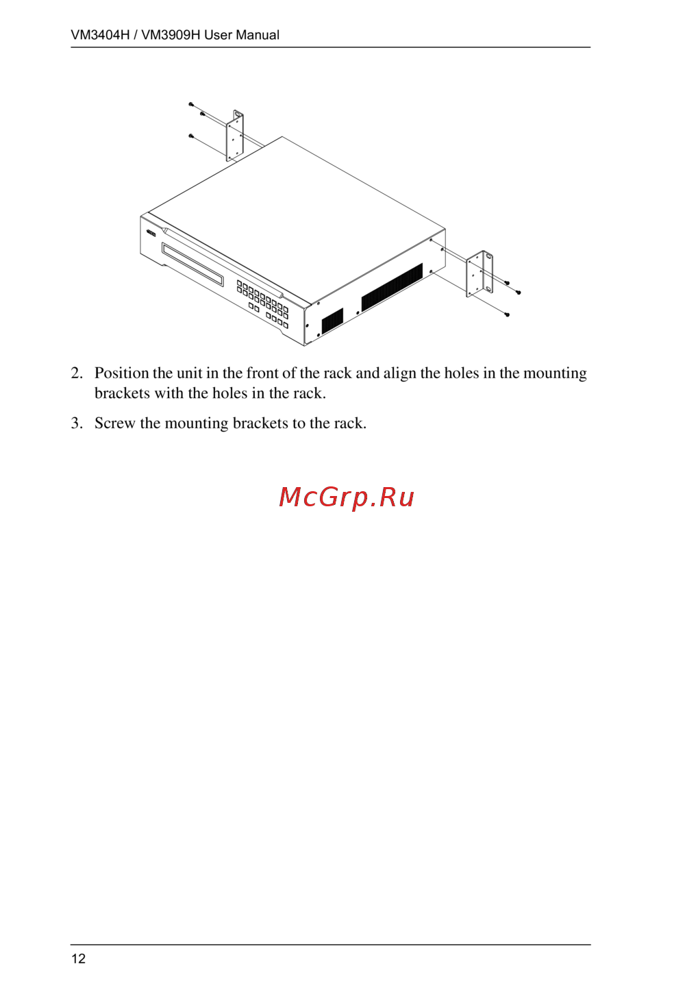 3. Screw the mounting brackets to the rack.