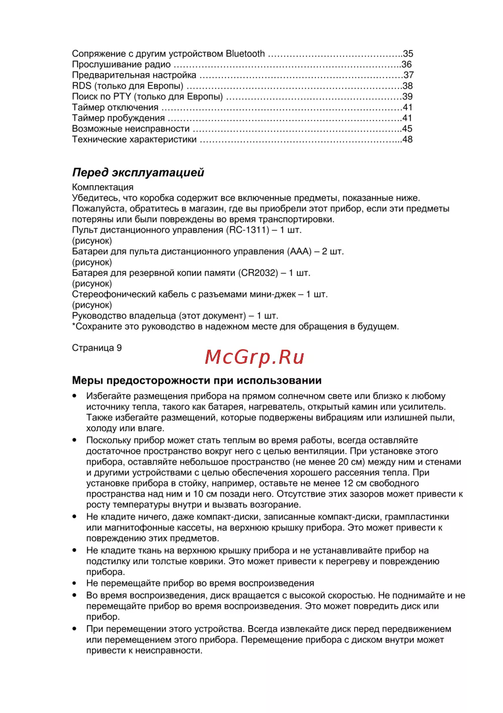 - Перед эксплуатацией p.8