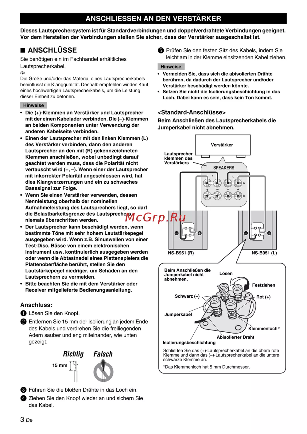 - Dieses lautsprechersystem ist für standardverbindungen und doppelverdrahtete verbindungen geeignet vor dem herstellen der verbindungen stellen sie sicher dass der verstärker ausgeschaltet ist p.16
