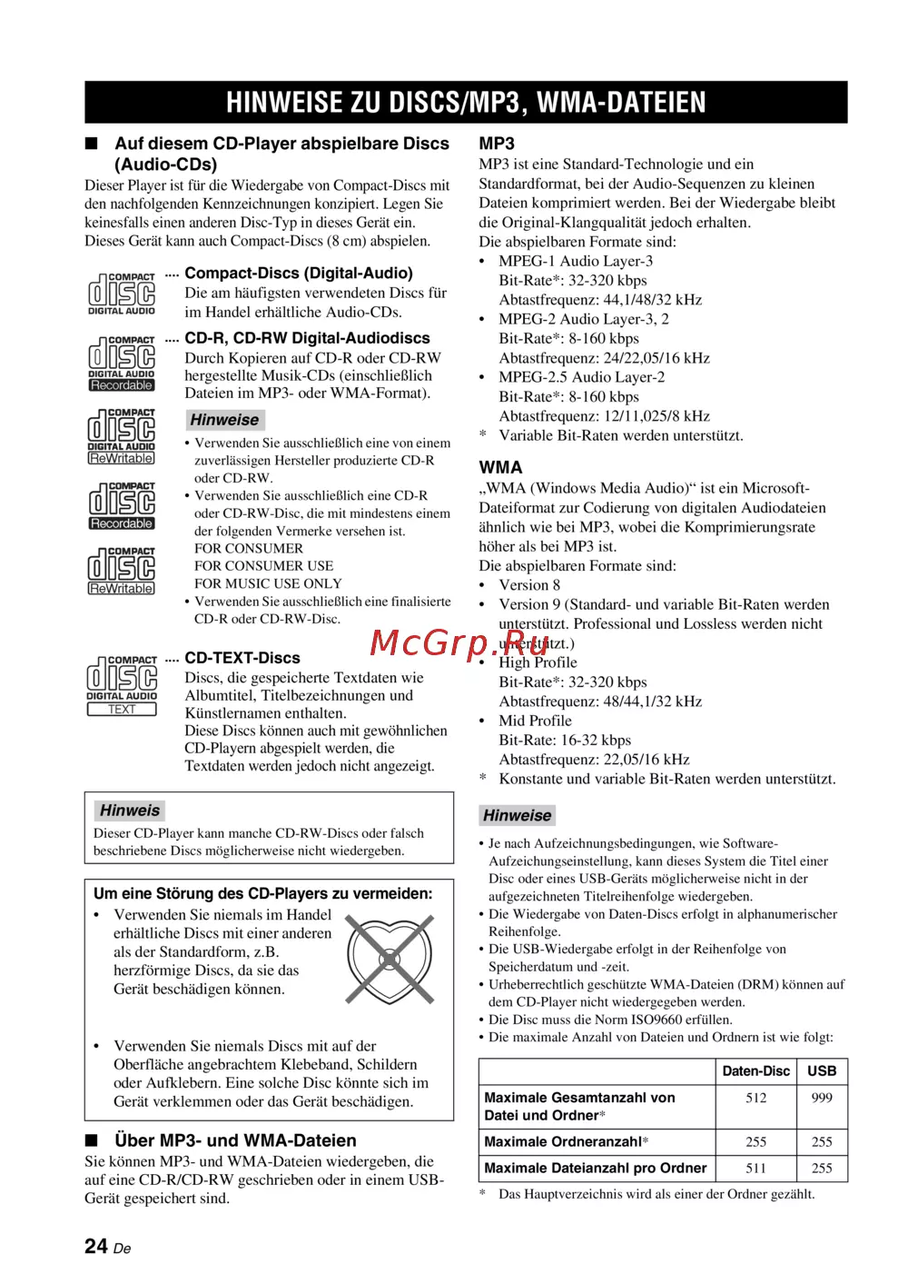 HINWEISE ZU DISCS/MP3, WMA-DATEIEN