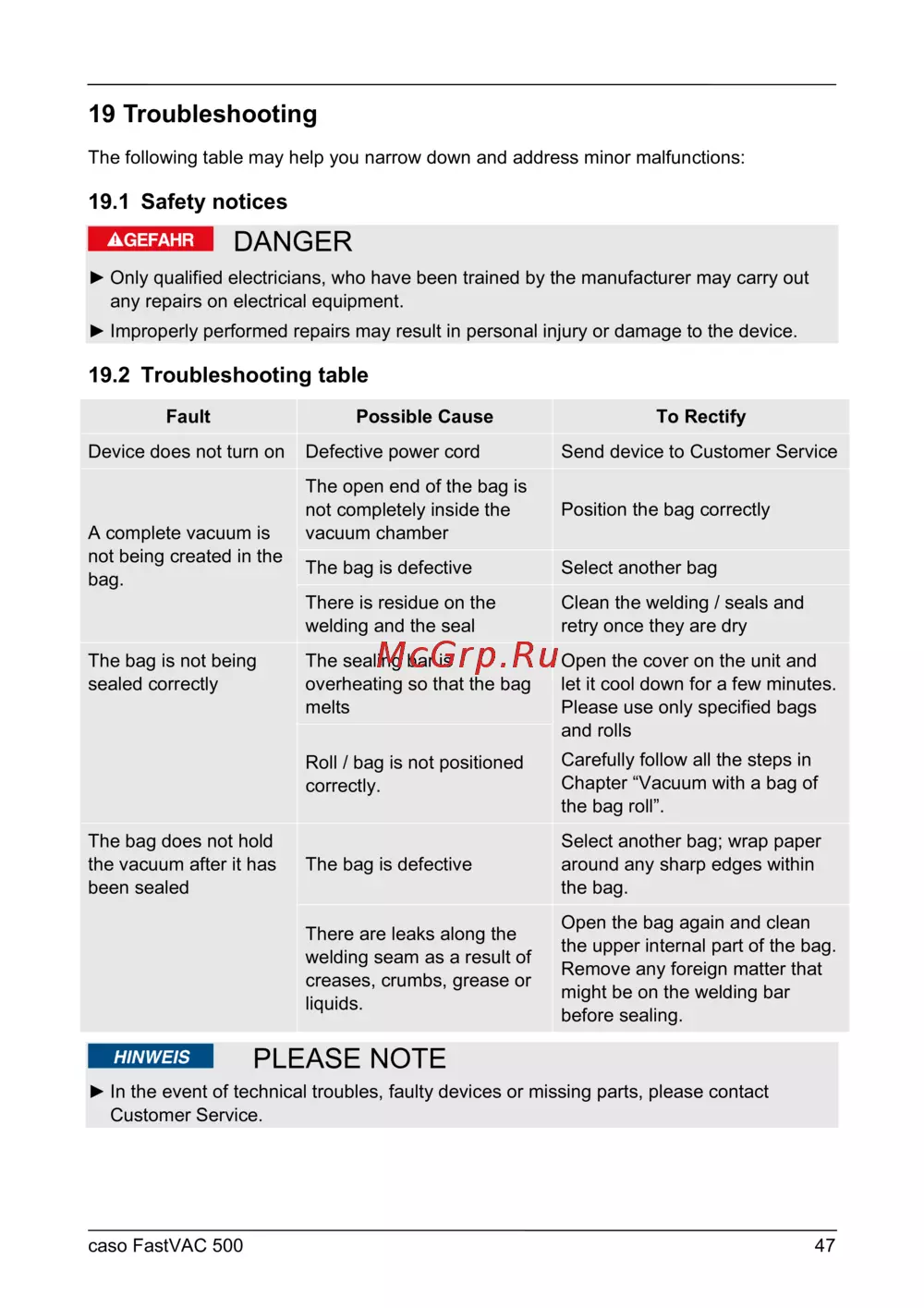 Caso fastvac 500 — руководство по устранению неисправностей вакуумного оборудования [47/132]
