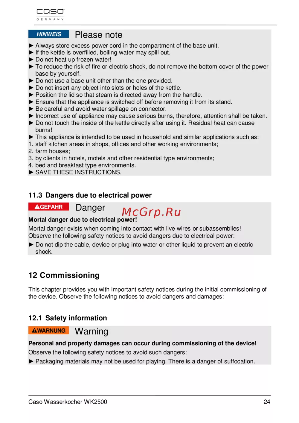 Caso wk 2500 — безопасное использование электрического чайника: важные советы [24/78]