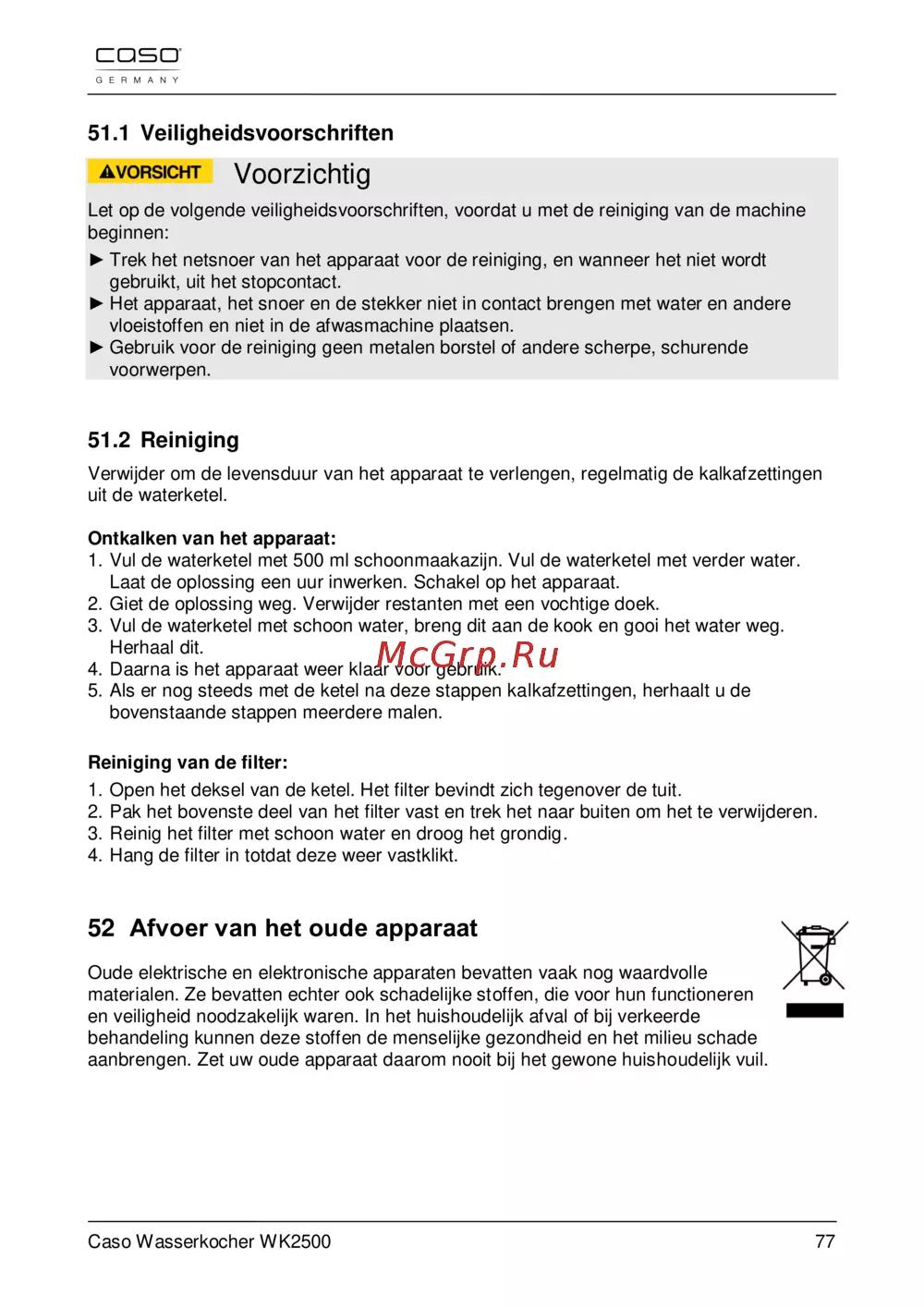 Caso wk 2500 — veiligheids- en reinigingsinstructies voor waterkokers [77/78]