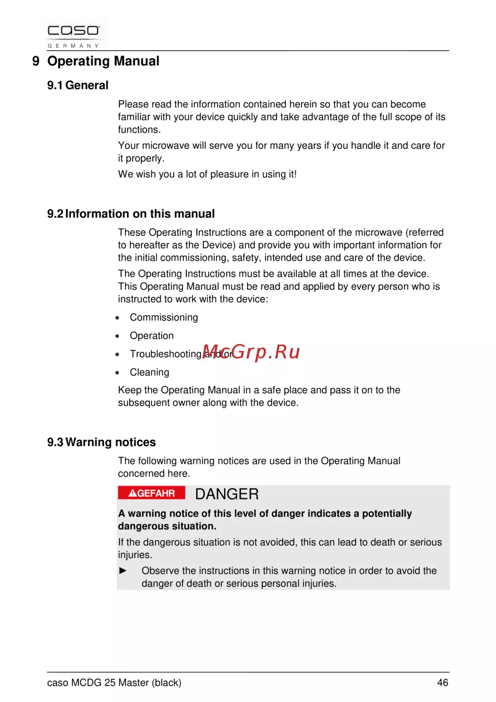 Caso mcdg 25 master black — полное руководство по эксплуатации микроволновой печи [46/202]