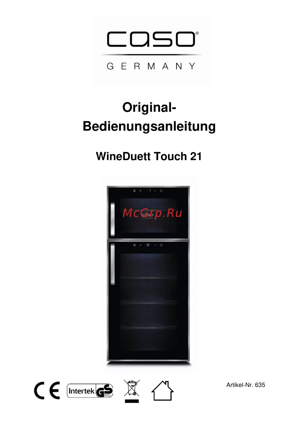 Caso wineduett touch 21 Инструкция по эксплуатации онлайн
