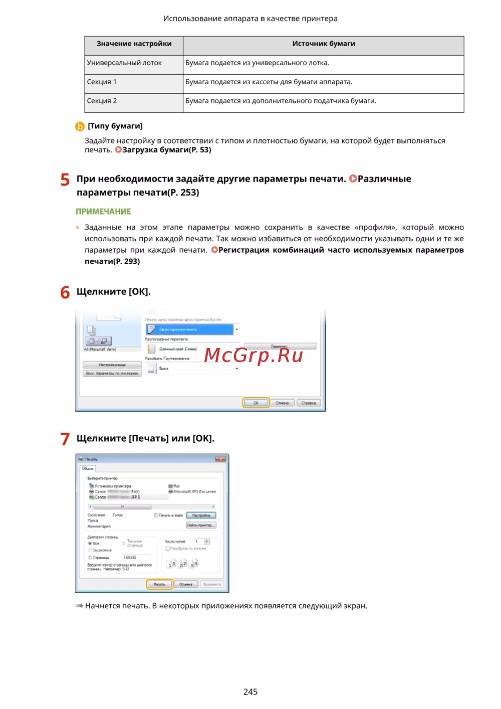 Canon i-sensys mf418x — настройка источника бумаги и параметры печати для устройств [255/949]