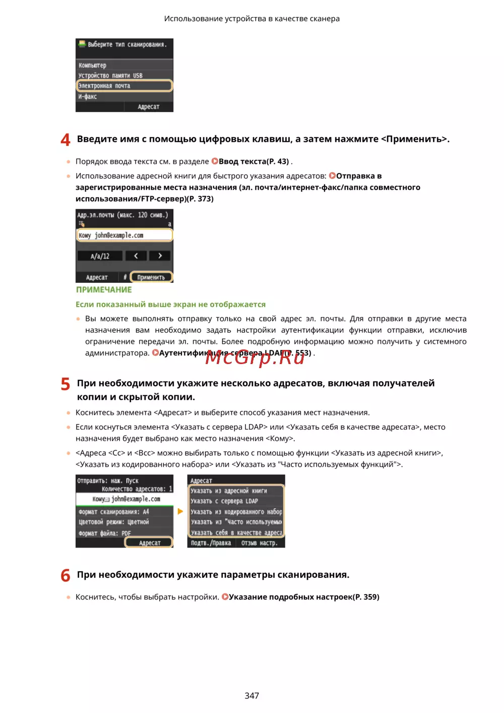 Canon i-sensys mf418x — инструкция по отправке и настройке адресатов для сканирования [357/949]
