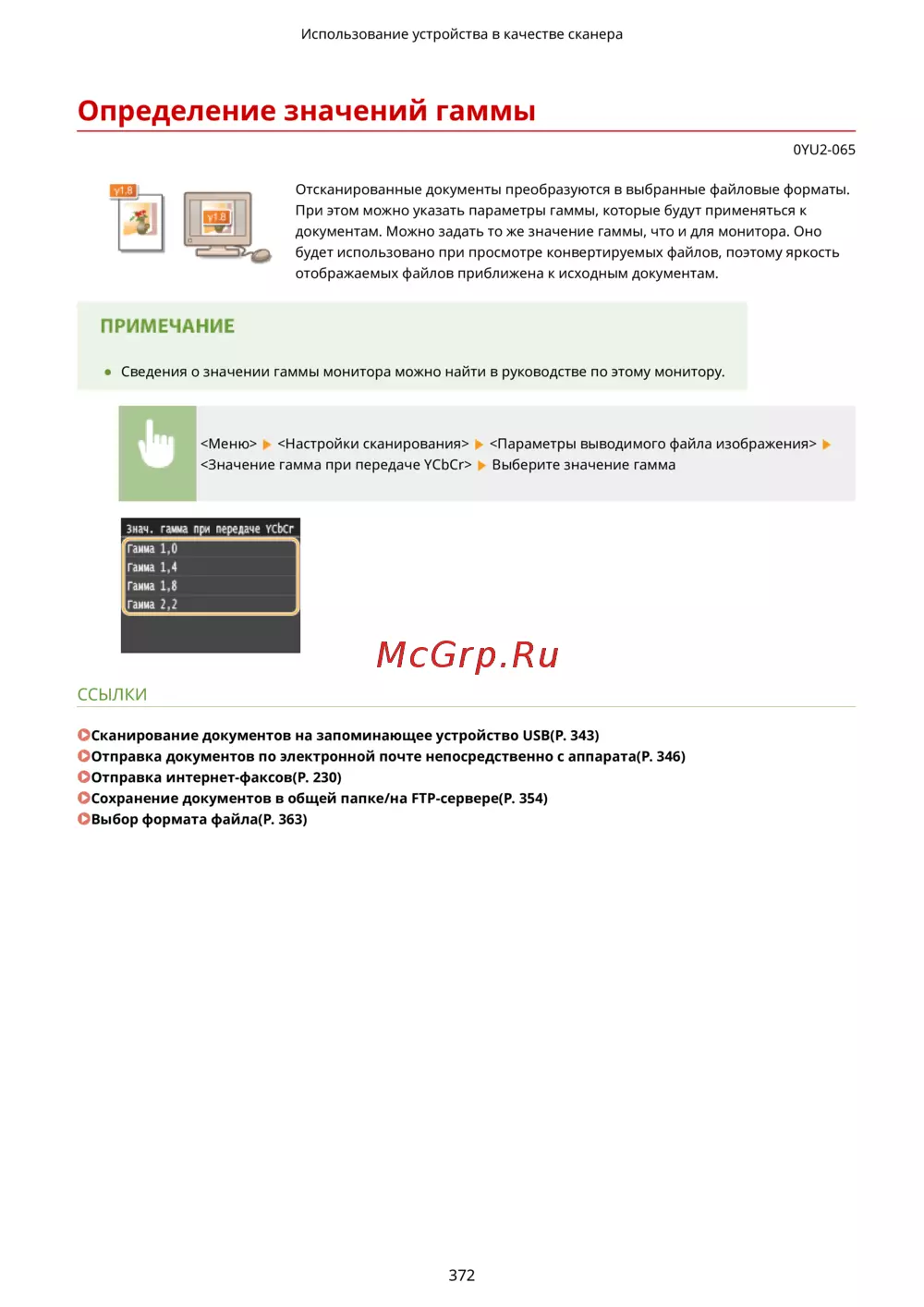 Canon i-sensys mf418x — настройки гаммы для сканирования документов и их форматы [382/949]