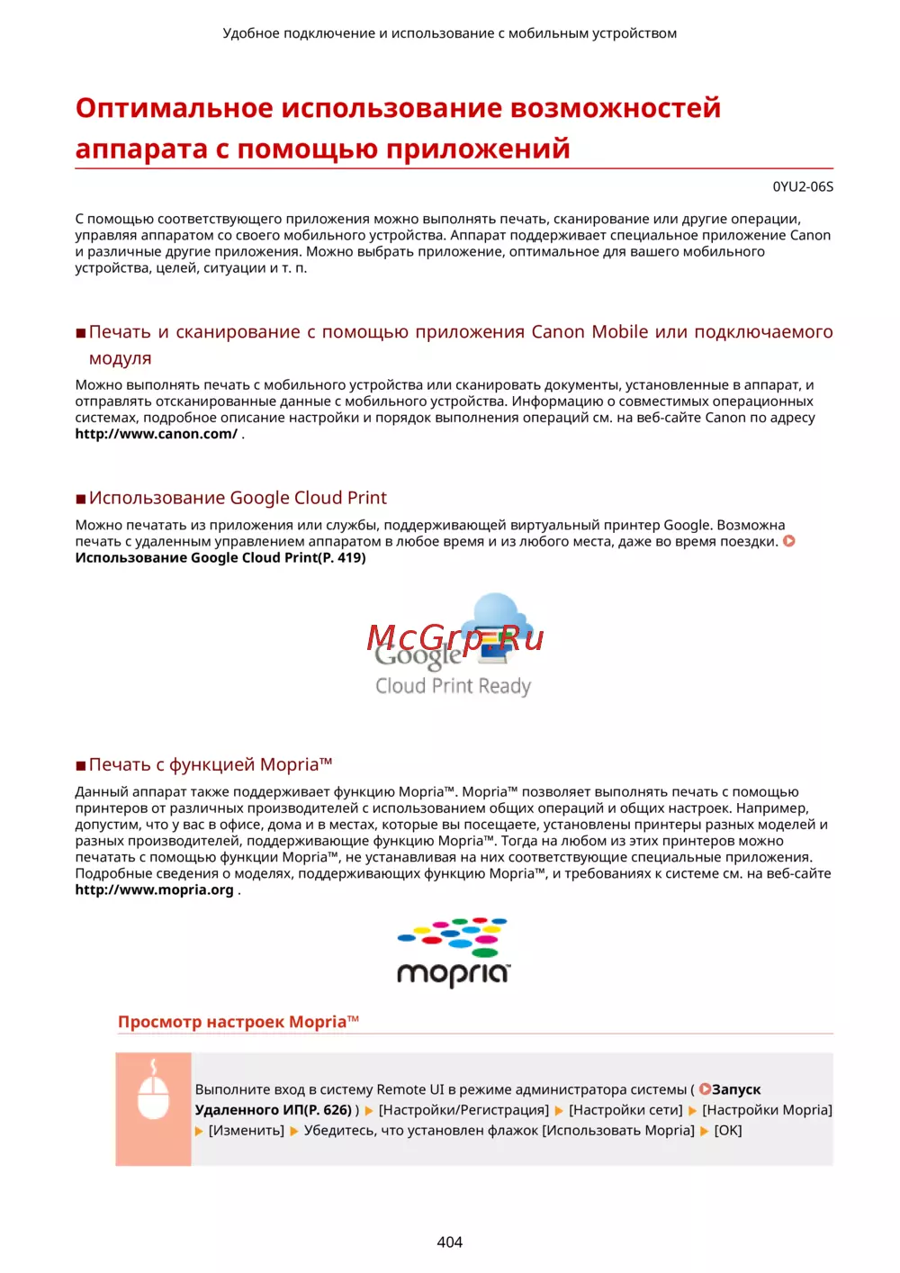 Данный аппарат также поддерживает функцию Mopria™. Mopria™ позволяет выполнять печать с помощью