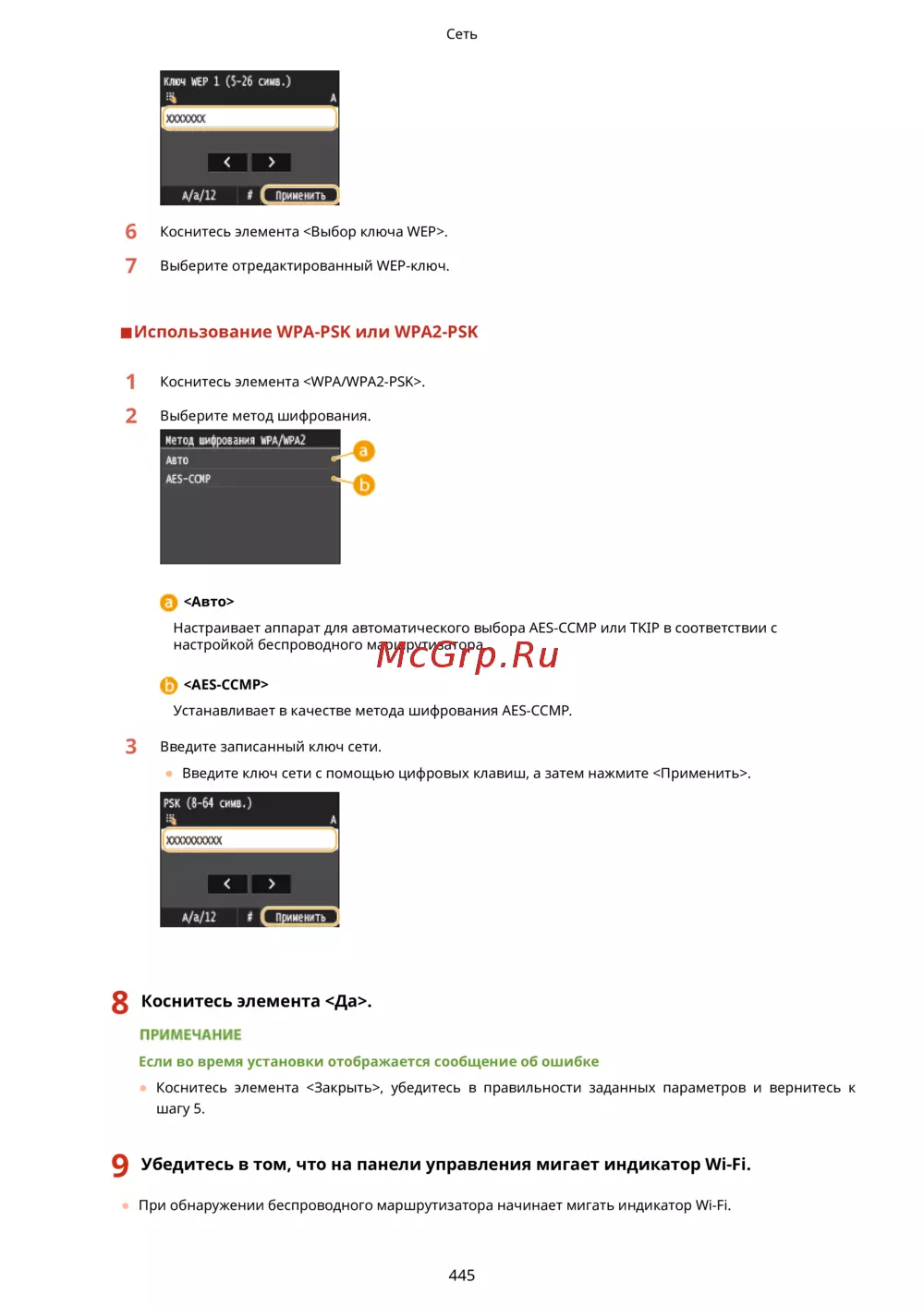 Canon i-sensys mf418x — настройка WEP и WPA-PSK для беспроводной сети [455/949]