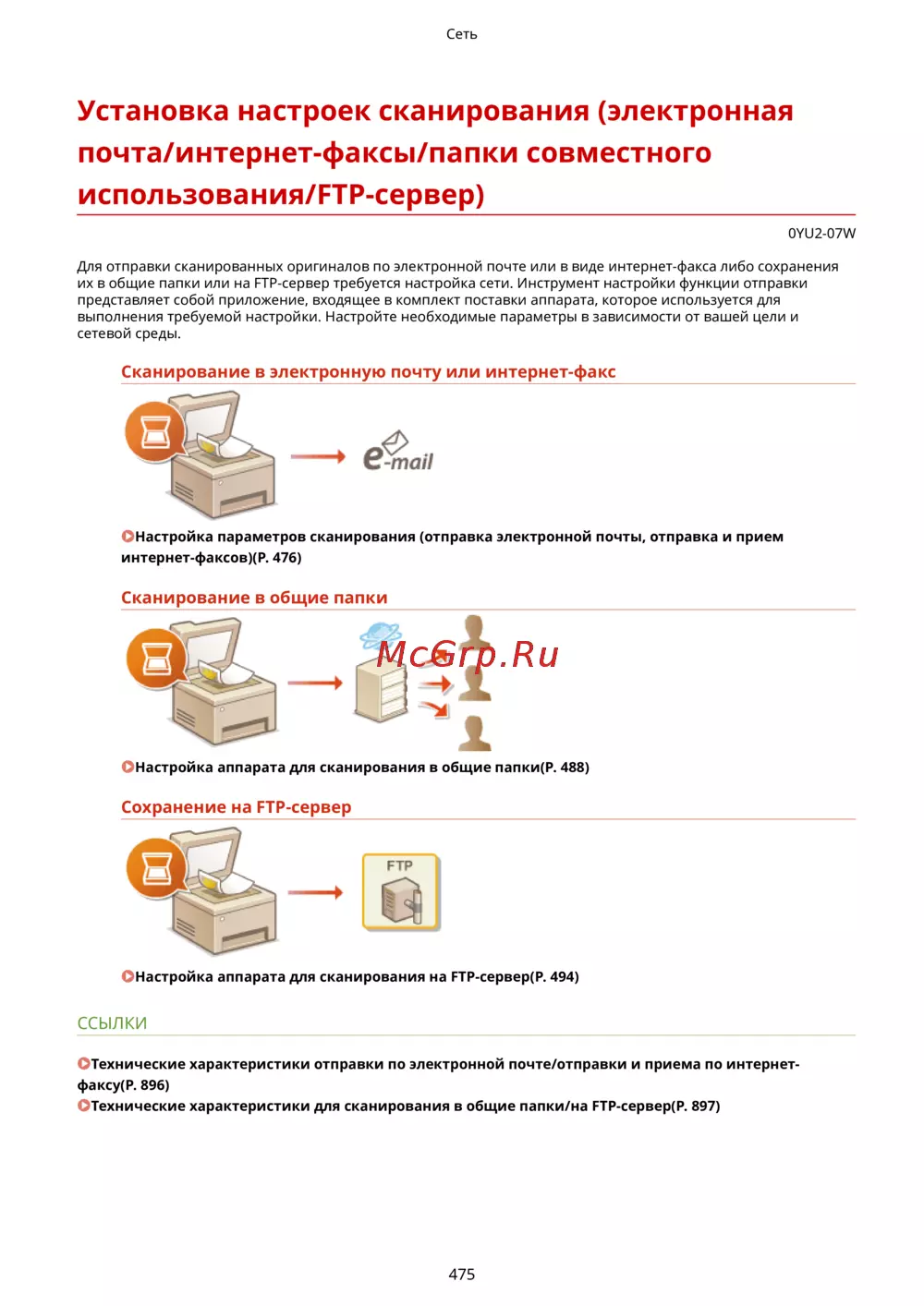 Настройка аппарата для сканирования в общие папки(P. 488)