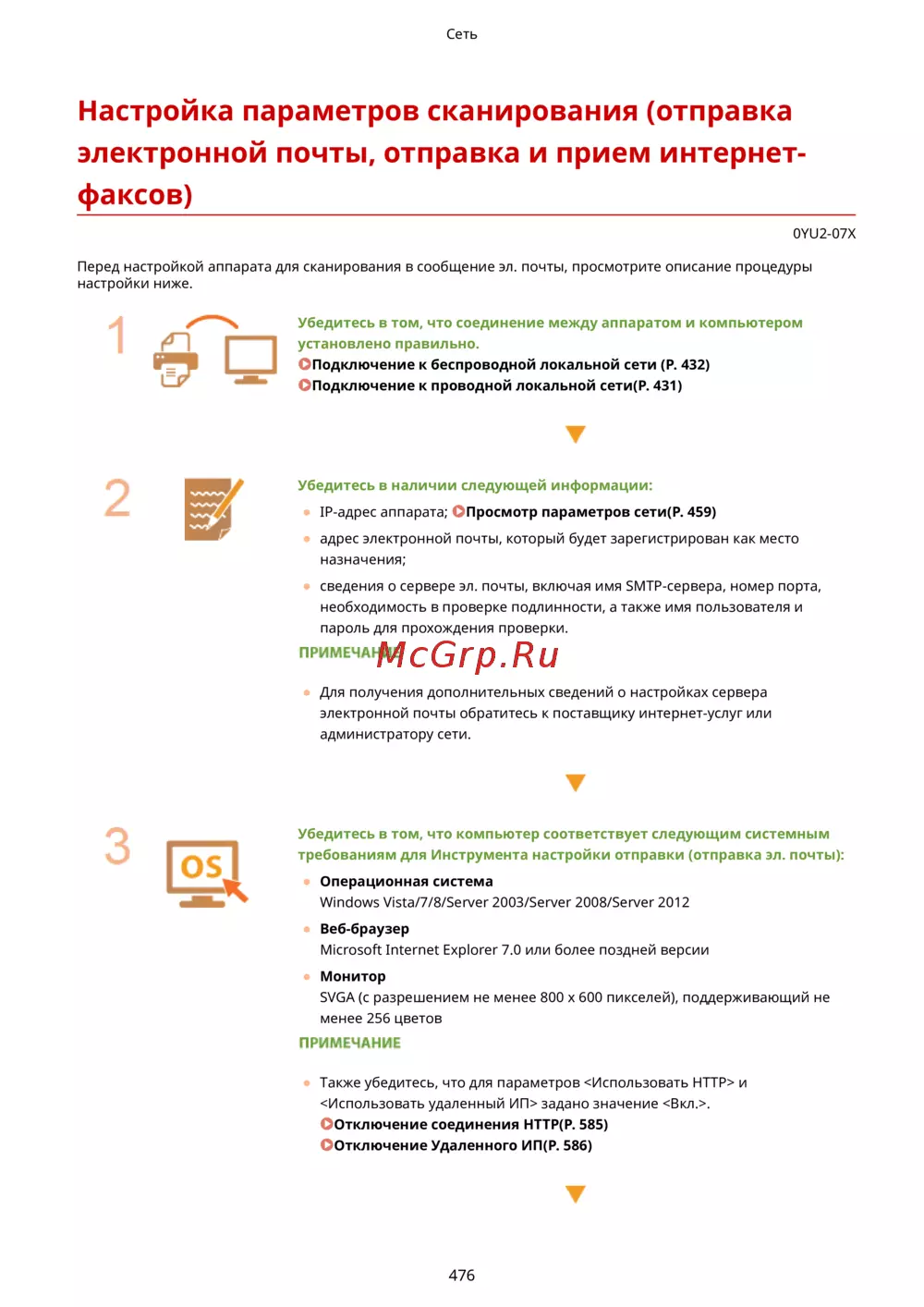 Перед настройкой аппарата для сканирования в сообщение эл. почты, просмотрите описание процедуры