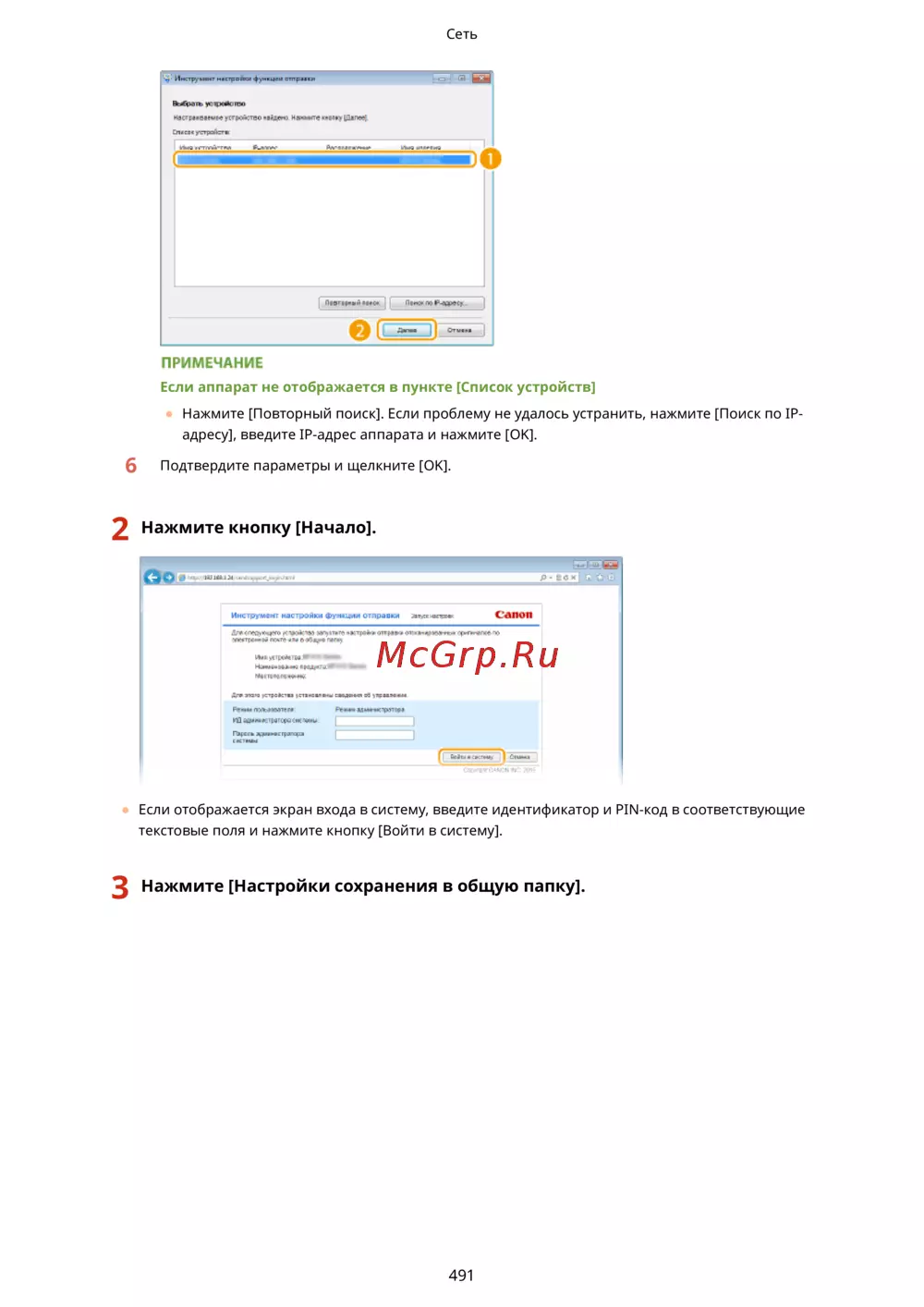 Canon i-sensys mf418x [501/949] Нажмите настройки сохранения в общую папку