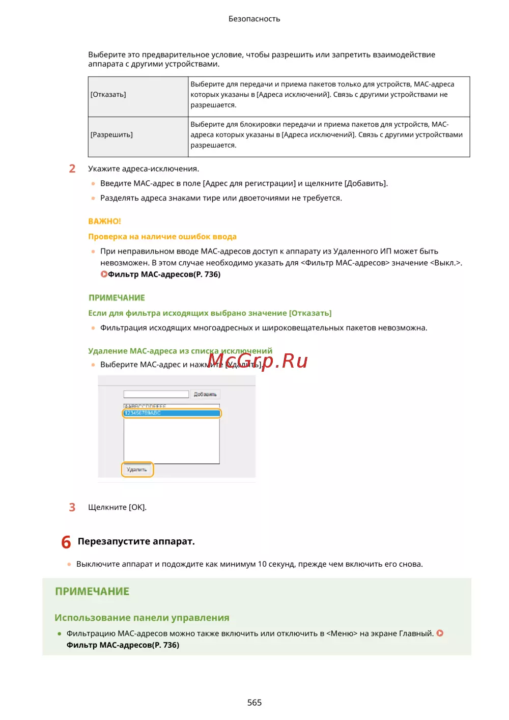 Canon i-sensys mf418x — настройка фильтрации MAC-адресов для устройств [575/949]