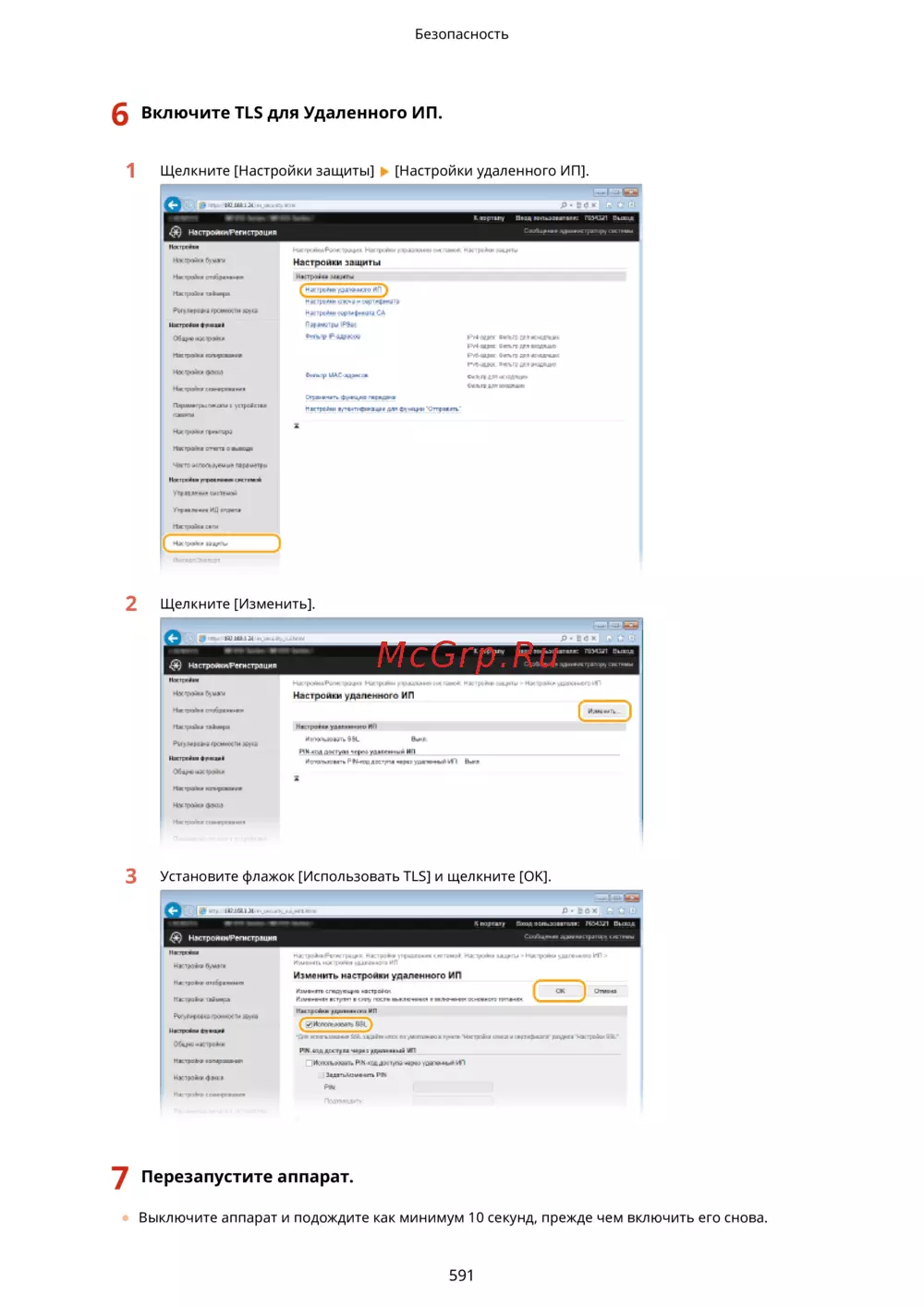 Щелкните [Настройки защиты] [Настройки удаленного ИП].