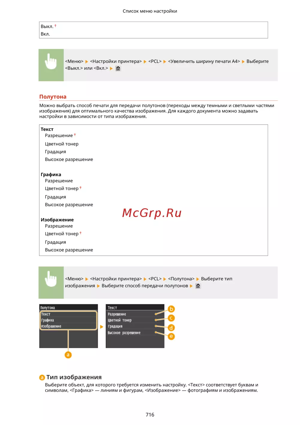 Canon i-sensys mf418x — настройки печати: управление полутоном и разрешением [726/949]