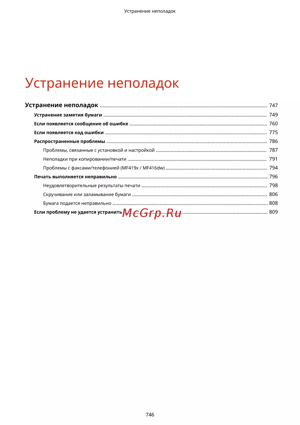 Проблемы с факсами/телефонией (MF419x / MF416dw) ........................................................................... 794