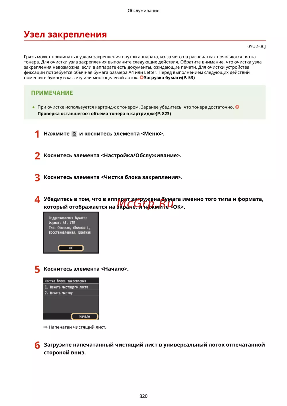 закрепления невозможна, если в аппарате есть документы, ожидающие печати. Для очистки устройства