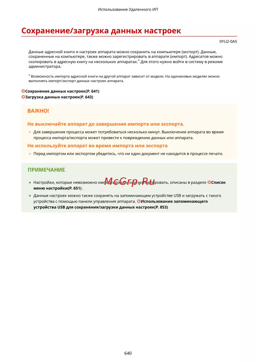 Canon i-sensys mf411dw — сохранение и загрузка данных настроек аппарата: пошаговое руководство [650/949]