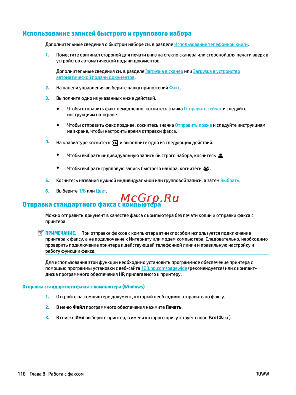HP pagewide pro 477dw — инструкция по отправке факсов с помощью сканера и компьютера [134/231]