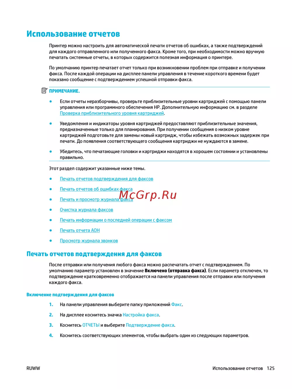 RUWW Использование отчетов 125