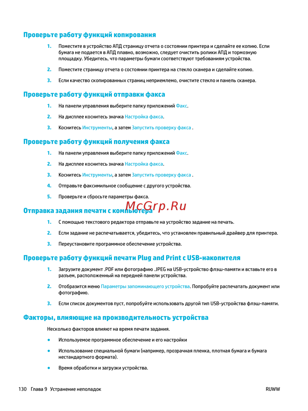 130 Глава 9 Устранение неполадок RUWW