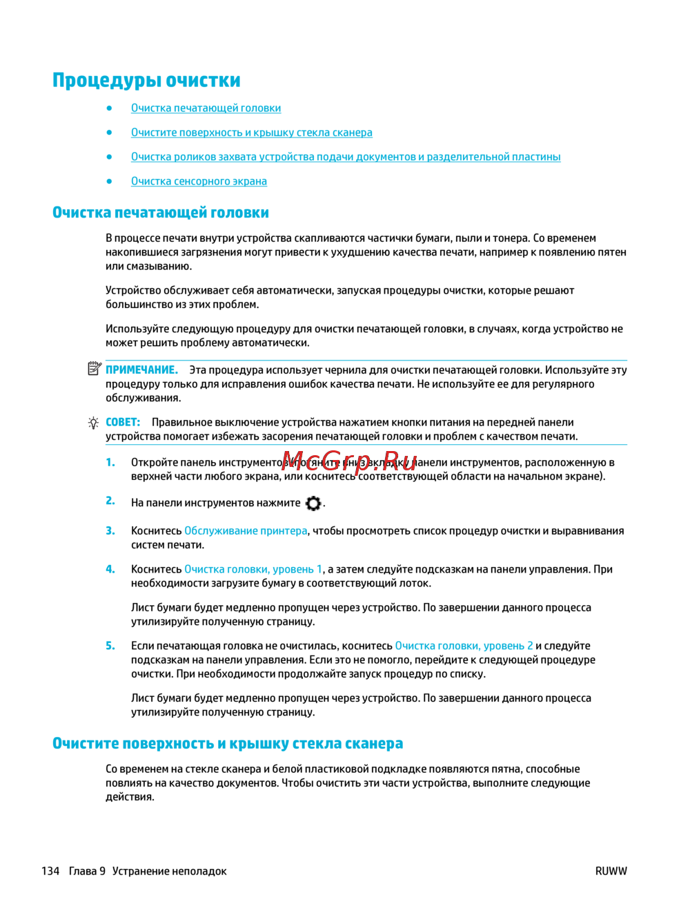 HP pagewide pro 477dw [150/231] Процедуры очистки
