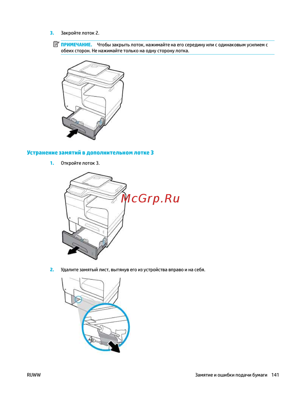 RUWW Замятие и ошибки подачи бумаги 141