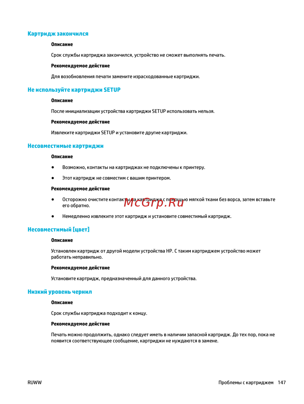 HP pagewide pro 477dw [163/231] Низкий уровень чернил