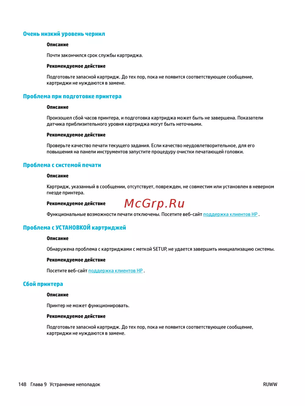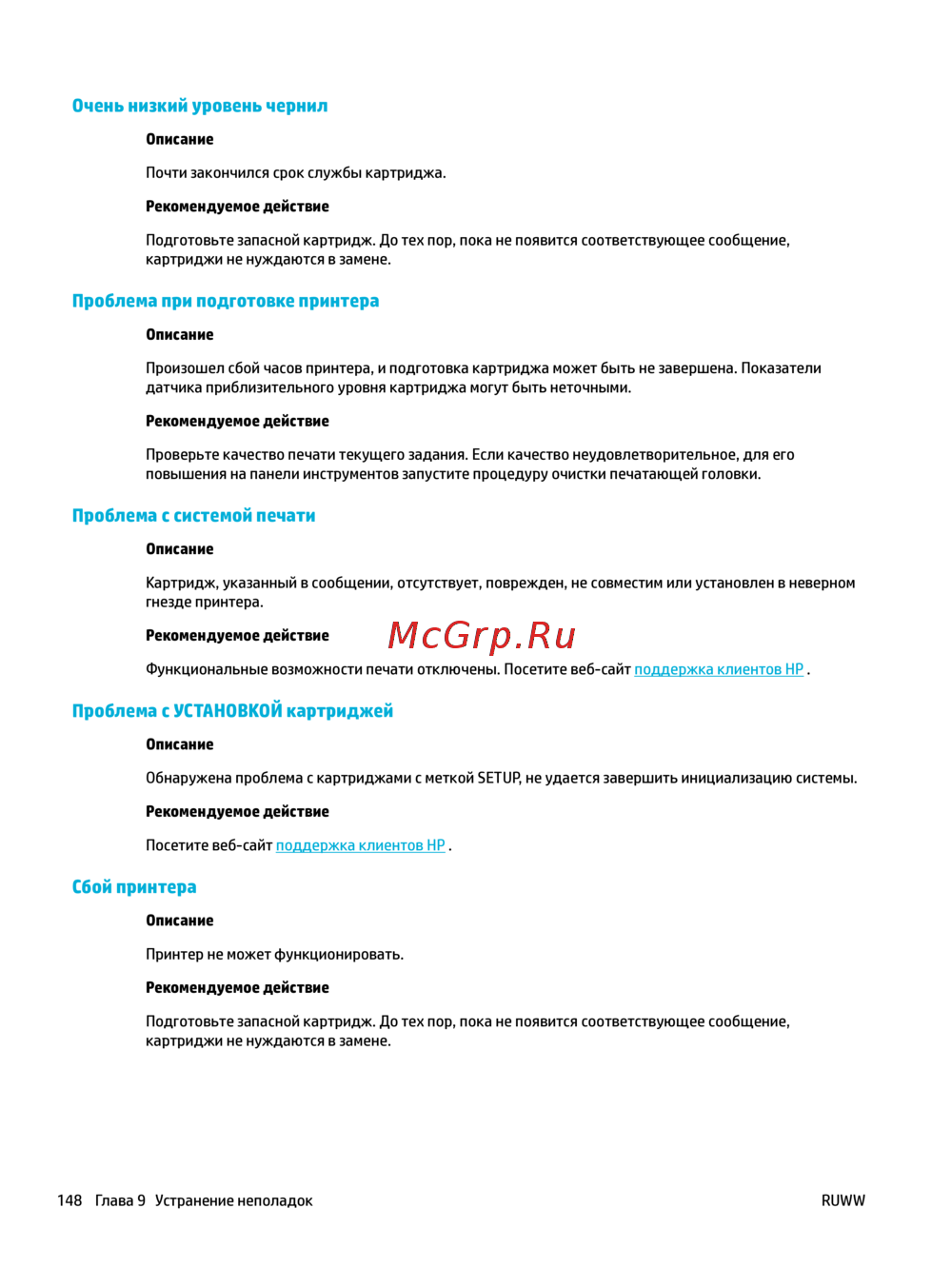 148 Глава 9 Устранение неполадок RUWW