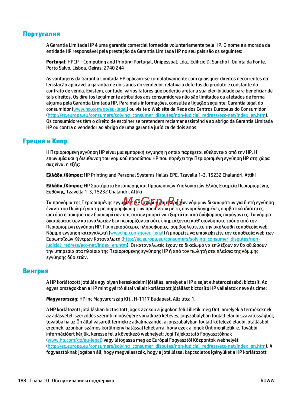 Νόμιμη εγγύηση καταναλωτή (www.hp.com/go/eu-legal) ή μπορείτε να επισκεφτείτε την τοποθεσία web των
